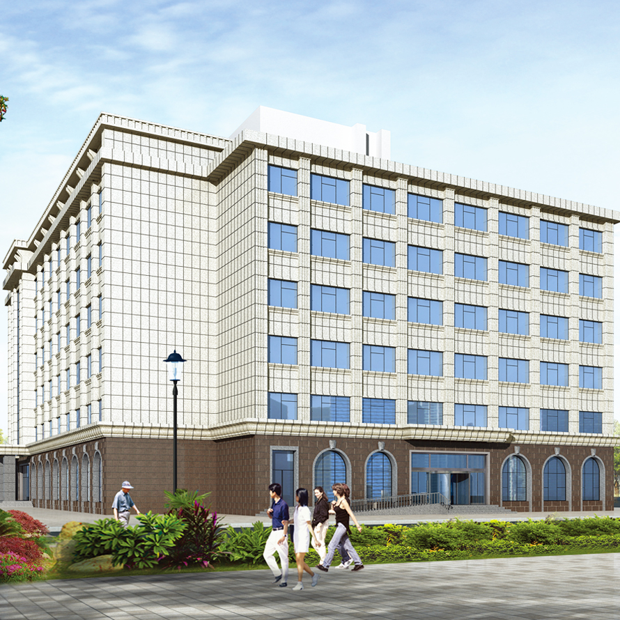該工程整體采用石材幕墻及玻璃幕墻,建筑造型略帶歐式風(fēng)格,通過石材的折線、歐式構(gòu)件造型來實(shí)現(xiàn)整體建筑。